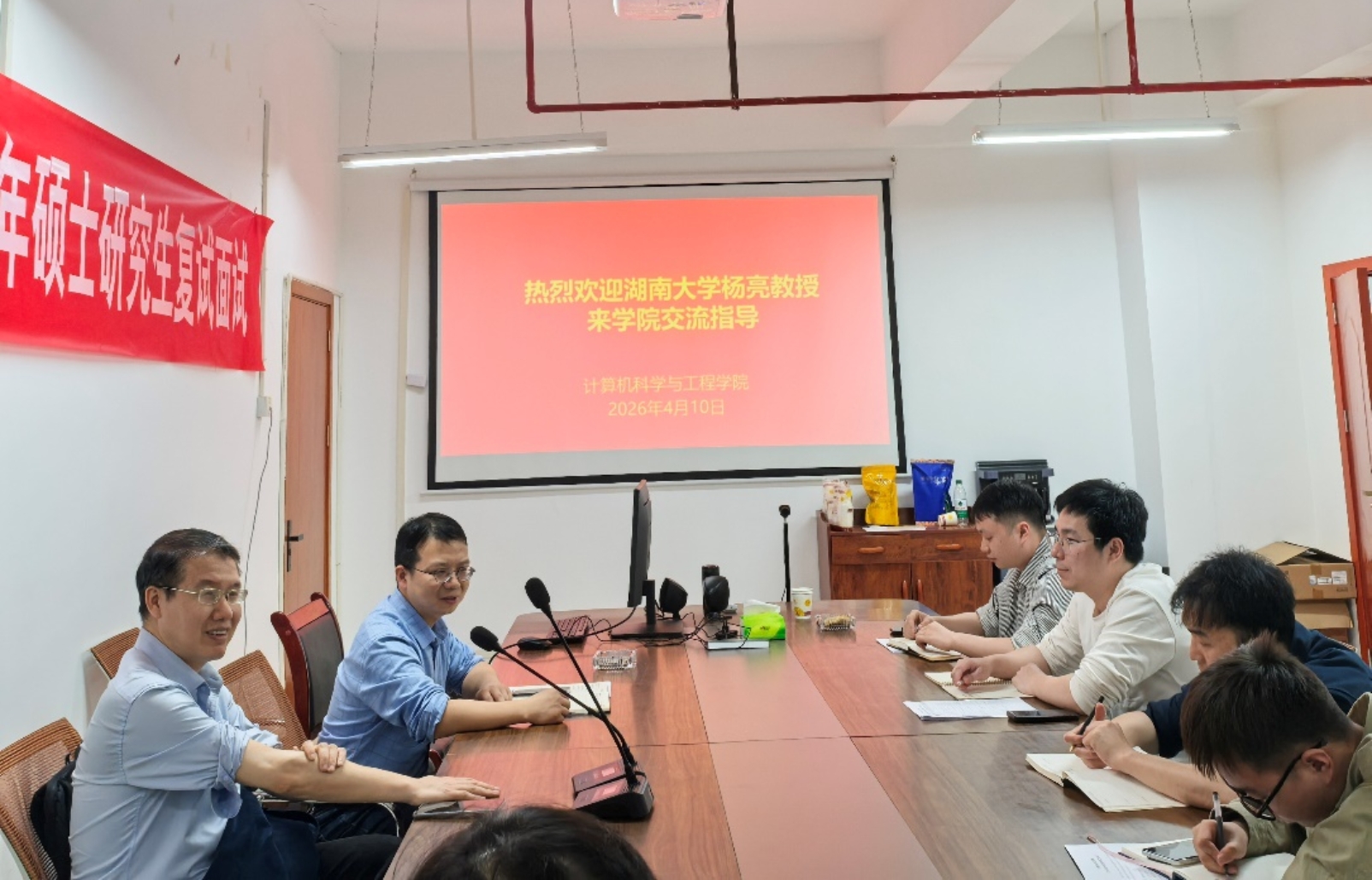 (计算机学院)4月10日下午,湖南省级高层次人才,湖南大学计算机学院博士生导师杨亮教授来我院开展学术指导与交流,深入了解学院学科建设与科研发展情况,并就相关工作提出指导意见。交流会...