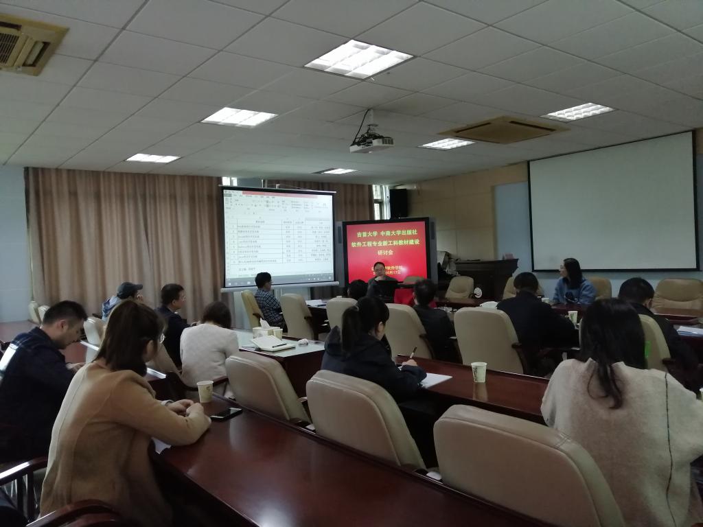 10月17 日上午,学院在3418 会议室召开软件工程专业新工科教材建设研讨会,学院院长周清平、党委书记李爱华等学院领导、教研室主任,骨干教师与中南大学出版社编辑韩雪座谈研讨,就融合创新背景下新工科教材建设的思路展开探讨。