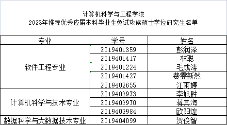2023年推荐优秀应届本科毕业生免试攻读硕士学位研究生名单公示