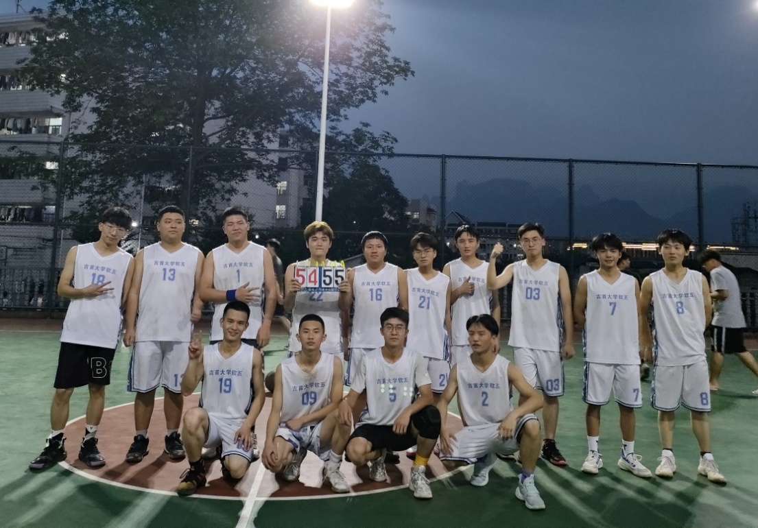 奋勇拼搏,才能收获成长;突破自我,也是一种快乐。在每场比赛中,队友与队友之间配合默契,双方队员严防死守、激烈争夺,或用娴熟的动作技巧突破对面的防守上篮得分,或抓住时机抢断并秒传队友成功得分,或用精准的投篮技巧拿下分数。比赛场上,分数领先的队伍也没有掉以轻心,而是趁胜追击,不骄不躁;分数落后的队伍也不气馁,而是越挫越勇,抓准时机,在团队的配合下采取反攻,拿下分数。场边观众为参赛队伍呐喊助威,只听见讲解一个激动的“Three!”欢呼声如同浪潮充斥整个篮球场,将比赛推至高潮。经过激烈的角逐,4月23日下午软件学院“咏新杯”冠军队伍就此产生,最终2021级软件工程5班摘得“总冠军”,也预示着本次“咏新杯”篮球赛圆满落幕。
