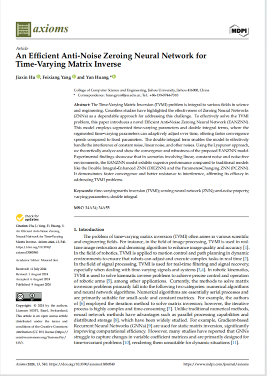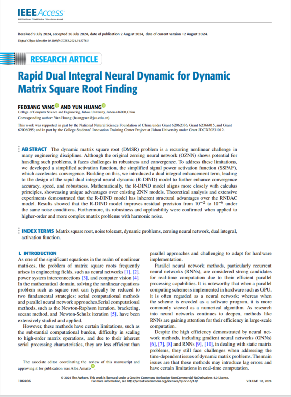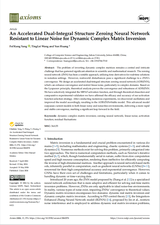 目前,杨飞祥已累计发表4篇SCI检索论文,其中第一作者论文3篇,合作发表1篇,研究内容涵盖深度学习模型优化、智能系统设计与复杂问题建模等前沿方向,具有一定的创新性与实用价值。他的科研成果多次受到指导教师与评审专家的高度评价,显示出较强的学术潜力。他的研究注重理论创新与工程应用相结合,不仅解决了实际场景中的若干技术瓶颈问题,还为后续科研人员提供了可参考的实验模型与数据结果,体现出良好的科研思维能力和技术沉淀。
