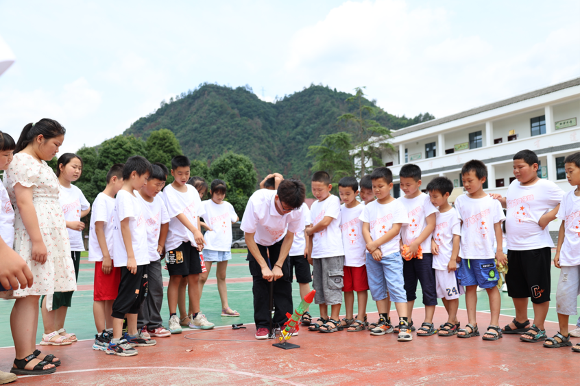 在走进科学课上,志愿者老师带领同学们一起制作充气飞机。小朋友们在了解了充气飞机的制作原理后,纷纷上前要自己动手体验。“哇,它一定可以飞到太空去”“我以后要自己动手制作真正的飞机飞上天空!”孩子们的思考方向在一次实验过后被充分的打开了。科学夏令营是第二次走进茅岩河镇中心学校,极大激发了学生们对于科学相关知识的渴望以及对于未来梦想的追求。“我就是希望,可以让同学们真正参与到实验当中来,帮助他们清晰未来的发展道路”志愿老师开心地说到。