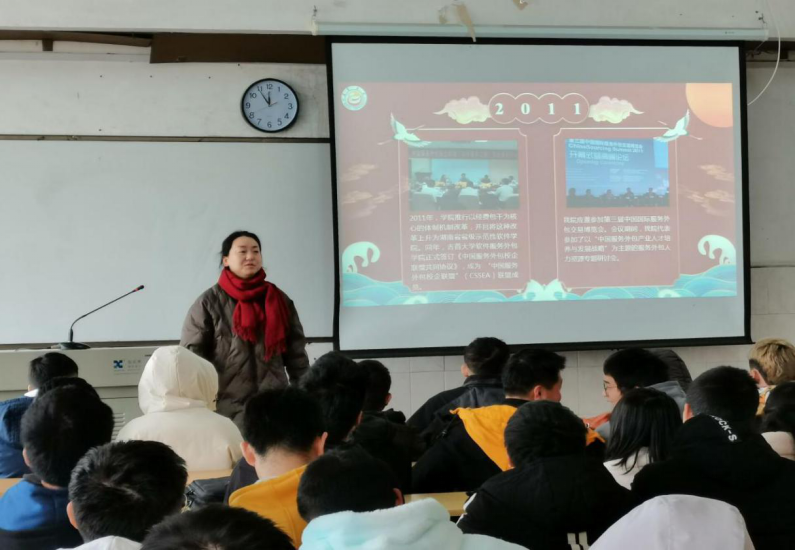 本网讯(刘鑫宇)为纪念十年来我院取得的巨大成就,弘扬全体师生团结奋进、不断超越的骄人风采,营造学院建院十周年浓厚氛围,进一步增强全院教职工及学生的凝聚力、向心力和自豪感,12月12日至12月17日全院范围内开展“我的大软院”主题班会,班会以“知院史、践院训、学院歌”为主要内容,学院软件学院各班班主任亲临班会现场,和同学们一起见证学院开展十周年取得的光辉成就并带领同学们一起学习院歌。