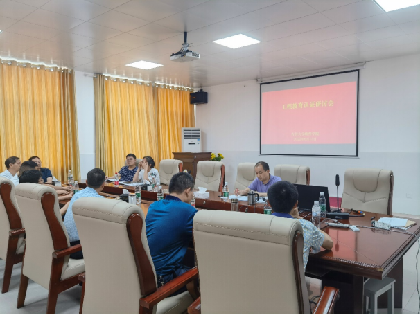 李爱华主持会议,周清平教授分享了他对工程教育认证的意义和指标内涵的学习解读。他还对认证工作流程、认证专家的观测点、认证申请书和自评报告的撰写以及支撑材料的整理组织等分享了学习考察体会。
