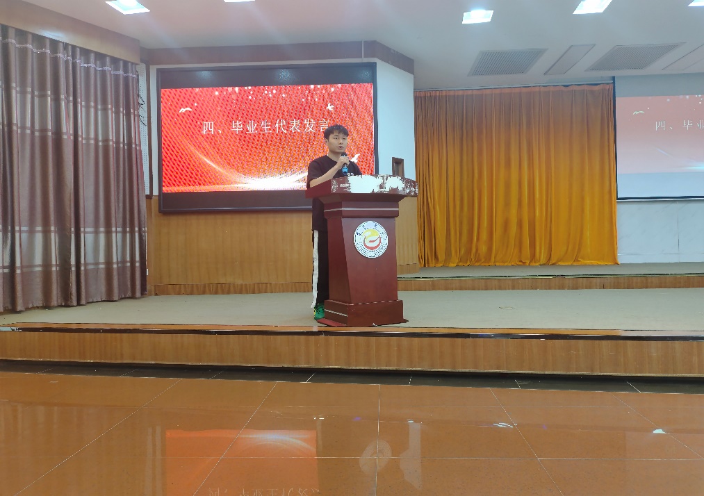 杨潇代表我院2024届毕业生对于母校以及辛勤培养他们的老师们表达了衷心的感谢。接着,呼吁同学们保持谦逊的态度,用积极乐观的态度,迎接工作、生活中的每一个挑战。最后,呼吁同学们文明离校。