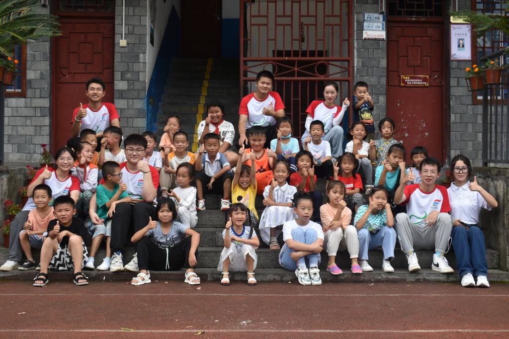 图为2022年“三下乡”社会实践部分志愿者与留守儿童合影